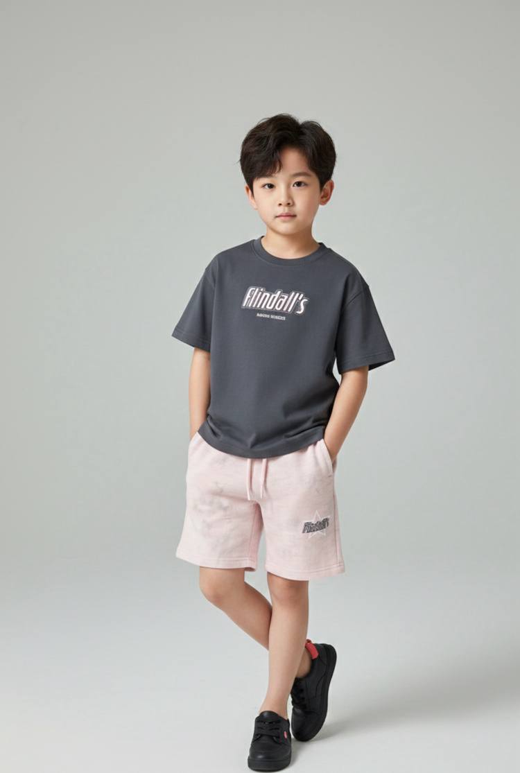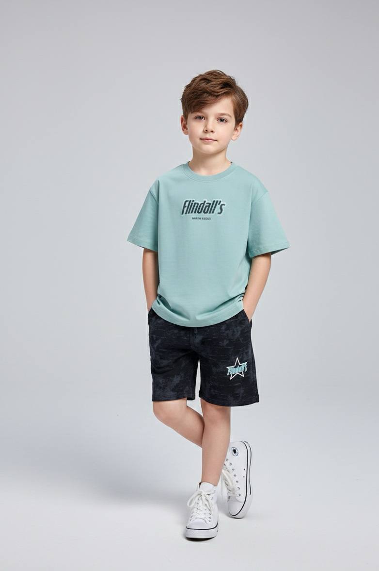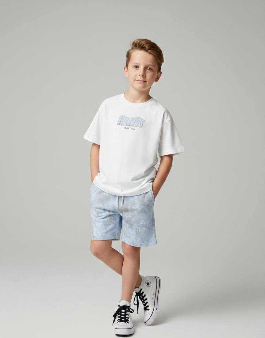 طقم أولادي مكون من تيشيرت ميلتون وشورت ميلتون بظهر فوطه. مثالي للأيام الدافئة مع خامة مريحة وناعمة.