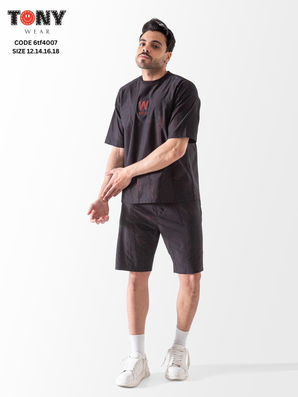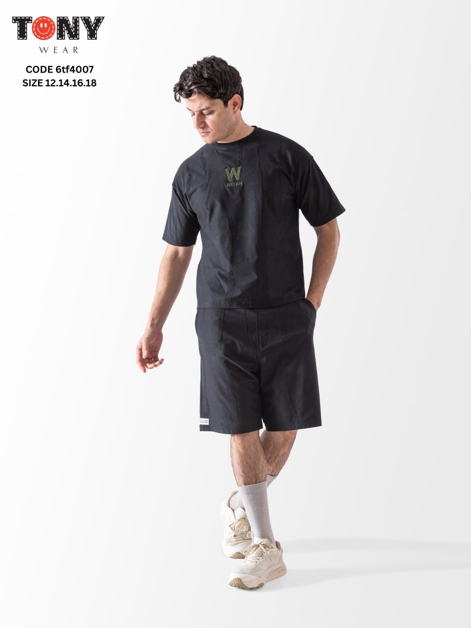 طقم جارسونيه مصنوع من خامة الجوكار المستورد، مثالي لأناقة الشباب. يتميز بتيشيرت مريح وشورت عملي يناسب مختلف الأنشطة.