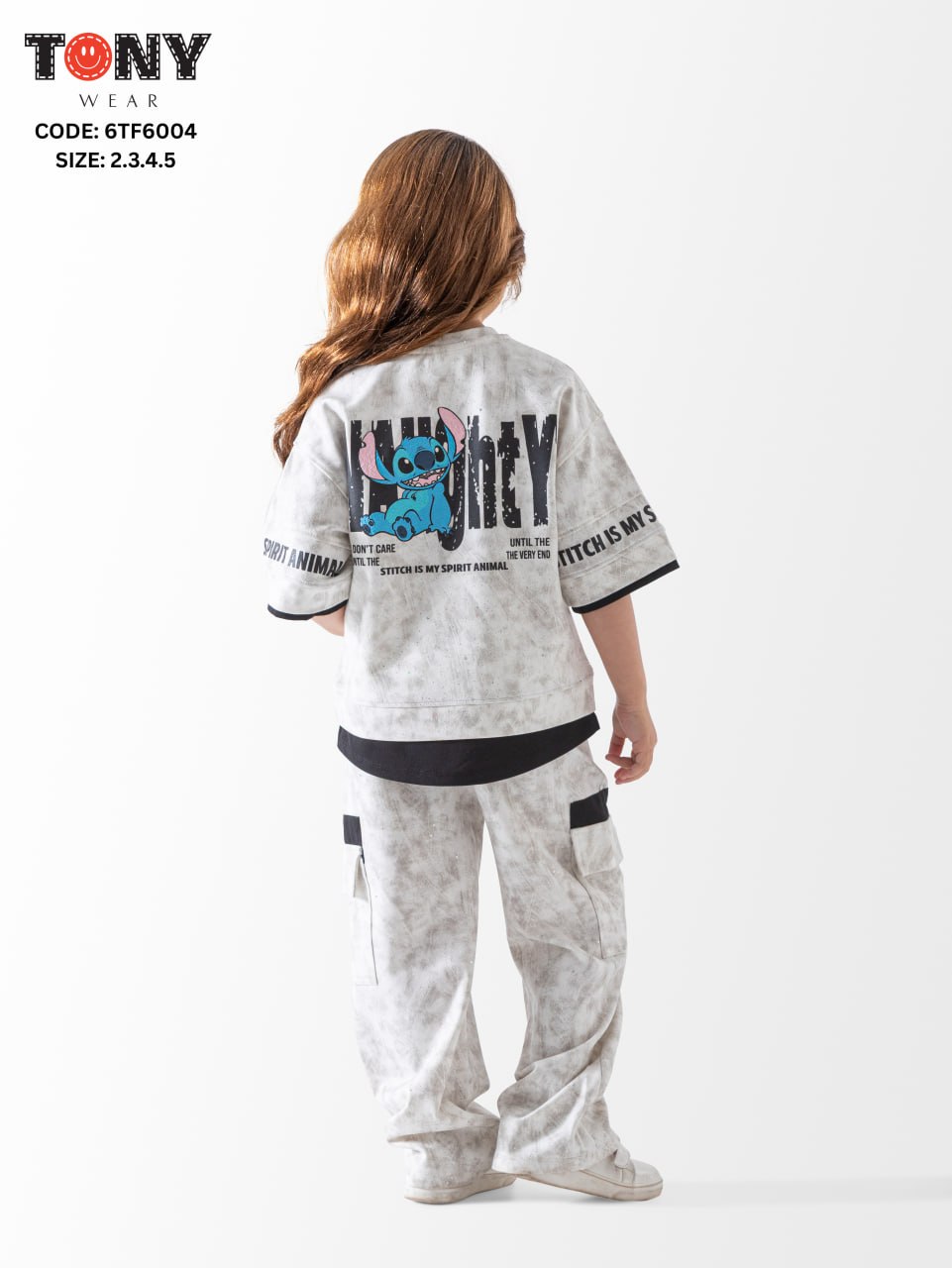 طقم رياضي بناتي يتكون من قميص بولو وبنطلون واسع. التصميم يحتوي على رسومات مبهجة، والخامة طبي سترس مريحة ومناسبة للحركة.