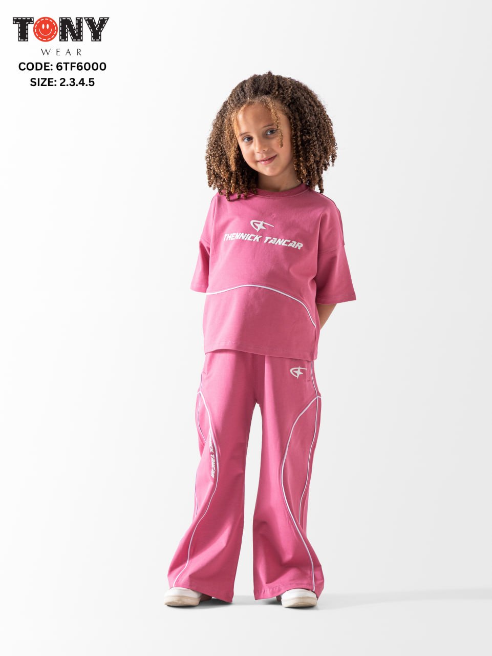 طقم بناتي من القطن الخالص بتصميم مريح ومناسب للأطفال. يحتوي على تيشيرت وسروال بلونين مختلفين، مناسب للمناسبات اليومية واللعب. متوفر بمقاسات متنوعة.