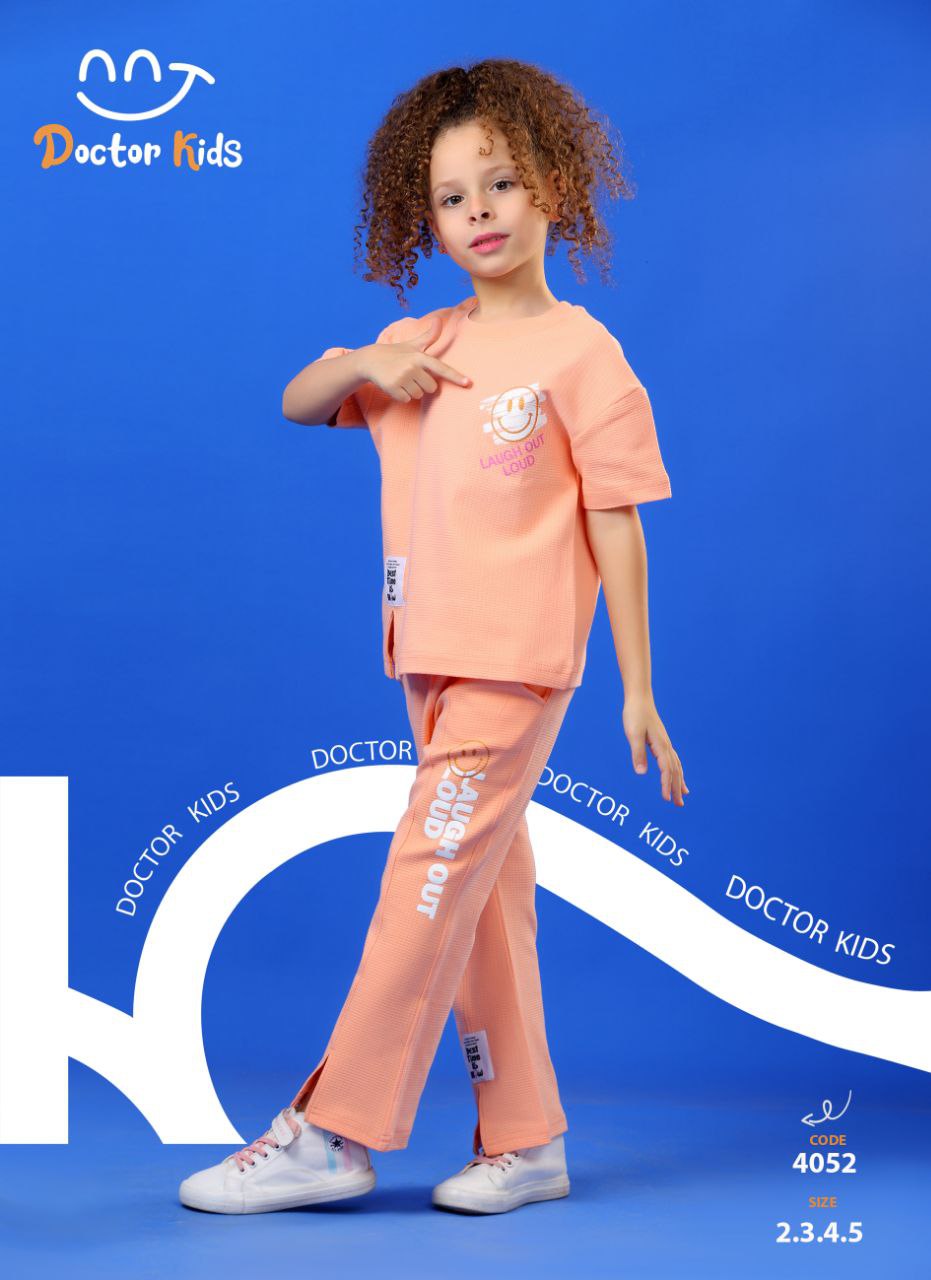 طقم بنطلون و تيشيرت مصنوع من القطن الناعم لتوفير الراحة. التصميم مزين بشعار 'LAUGH OUT LOUD' على الصدر والبنطلون لإطلالة عصرية مناسبة للأطفال.